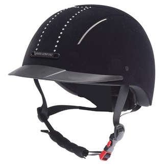 Kaunis malli, joka istuu hyvin päässä. Säädettävä koko ja pienet tuuletus aukot edessä ja takana. Samettimainen pinta, strassikoristeet.